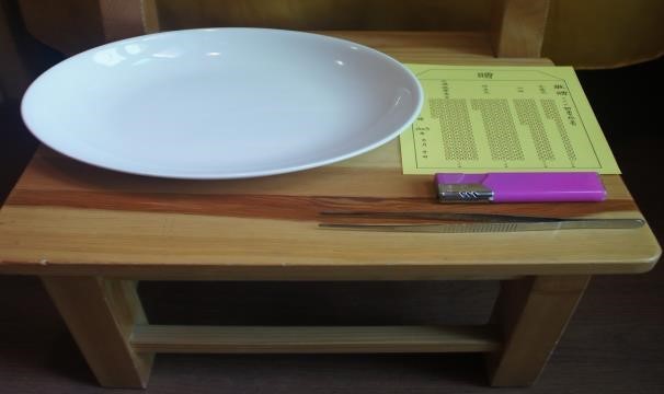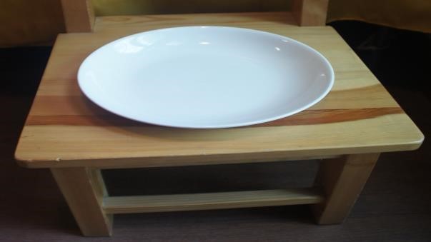 可以在佛台旁边的地板上垫盒子或木头,或者使用新的专用的凳子,上面放盘子。
